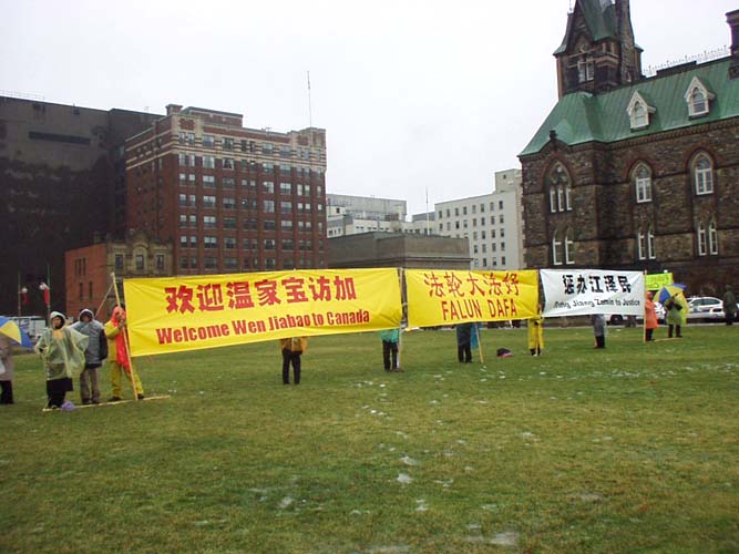 12月10日温家宝抵达加拿大时,自由党的人士参加晚宴之前,遇到法轮功学员时,表示在晚宴期间会委婉的提出法轮功在中国受迫害的情况。