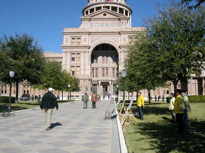 国际人权日德州奥斯汀学员在州府楼前讲真相(图)
