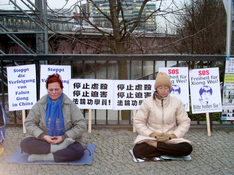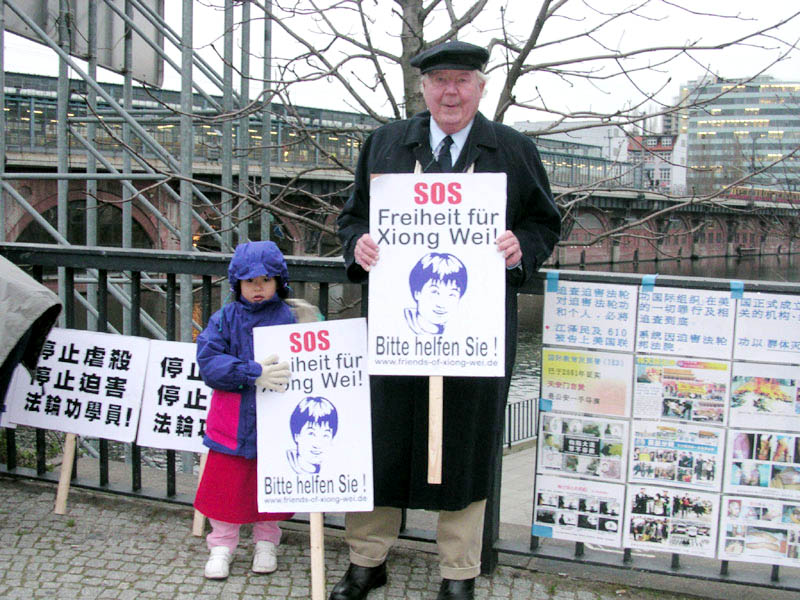 我们放着为熊伟创作的歌,向过往行人分发了大量呼吁释放熊伟的明信片,许多人给予我们关注和支持。两个路人当即表示,要给外交部和联邦总理写信。