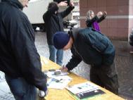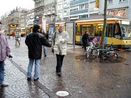 【明慧网2003年12月15日】继12月10日国际人权日法轮功学员在德国六个城市汉诺威(Hannover),海德堡(Heidelberg),柏林(Berlin),慕尼黑(Munich),雷根斯堡(Regensburg)和法兰克福(Frankfurt)举办活动后,12月13日,卡尔斯鲁尔和附近的城市的学员利用周末的时间来到德国联邦检察院所在地卡尔斯鲁尔继续德国各地的人权日的活动,告诉人们诉江的消息,同时呼吁营救熊伟。