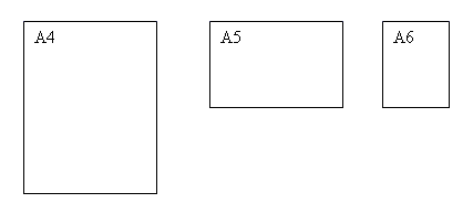 图1:A4,A5,A6 纸张大小示范 (A4 = 2张A5, A5 = 2张A6, A4 = 4张A6)