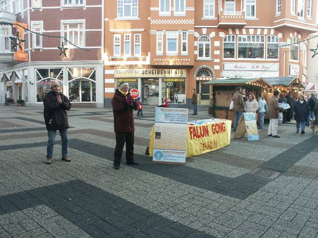 【明慧网2003年12月22日讯】在圣诞节的第一个周末,来自布莱梅和汉堡的大法弟子在库克斯港(Cuxhaven),以向人们、营救熊伟等为目的,举行了首次信息日。