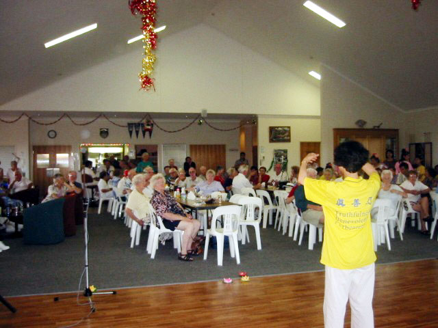 【明慧网2003年12月24日】12月21日,圣诞节前夕,澳洲布里斯本市阳光海岸和黄金海岸等地区的一些大法弟子来到市郊一座老人院与老人们一起举办联谊会, 学员们丰富多彩的歌舞表演及祥和的功法演示博得老人们热烈的掌声和阵阵喝彩。