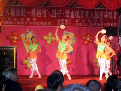 中部地区法轮功学员运用云林县生命线协会提供的四十分钟演出时间进行了青春舞曲、舞动光明─芭蕾独舞、卡通动画欣赏与法轮功五套功法表演等多项节目,上台演出功法的小朋友从五岁至十二岁不等,尽管每个小朋友习炼时间长短不一,但认真、专注的表情与祥和的炼功音乐也吸引台上的女主持人与台下的民众依样比划着动作。