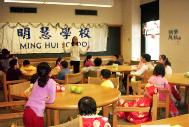 明慧学校教学以法轮大法为本,在实施汉字教育、传统文化教育等课程的同时,教导孩子们以“真善忍”为标准为人处世,并学炼简易而有效的法轮功五套功法,以达到能使人受益一生的身心健康状态。