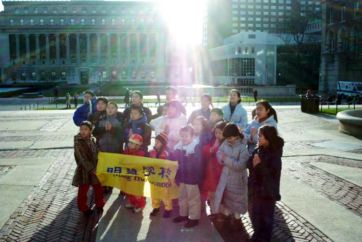 纽约、新泽西明慧学校曾在今年合办两次夏令营活动,家长及孩子们反映非常好,也使两地的小学员们增进了友谊。在新年之际,两校再次决定合办迎新年,讲真相的活动。孩子们身着鲜艳的节日服装,相互问候。教室内五彩的丝带,丰盛的食品,洋溢着一派节日的气氛。