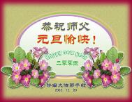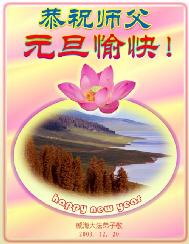 在新一年元旦到来之即,大陆大法弟子向师尊致以最纯净、最崇高的敬意:“师父,您好!您辛苦了!弟子们祝您元旦快乐!”