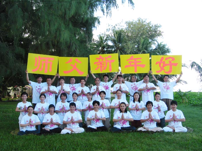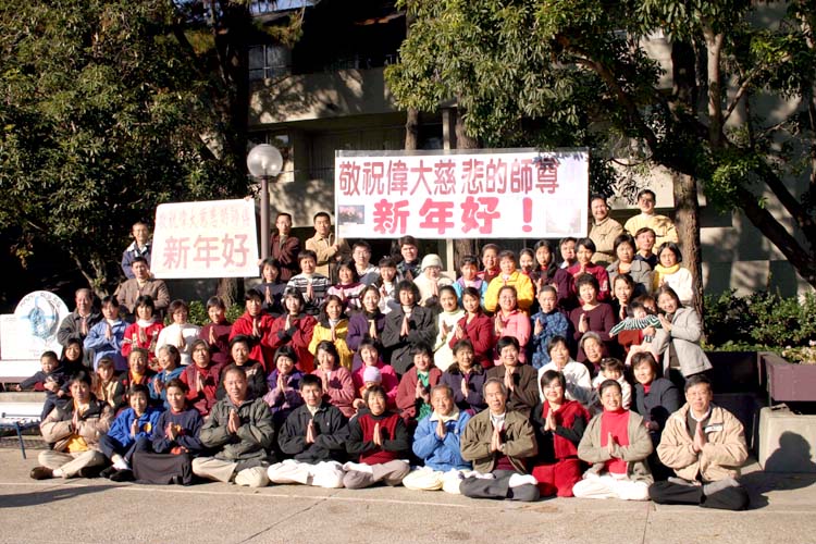 即将走进2004年的大门,我们在恩师的法像前,没等开口泪已泉涌,回首往事,没有师父的慈悲呵护,弟子怎能走过4年的腥风血雨,没有恩师的佛恩浩荡众生怎能安然于世,千言万语、万语千言汇成一句话:师父新年好!