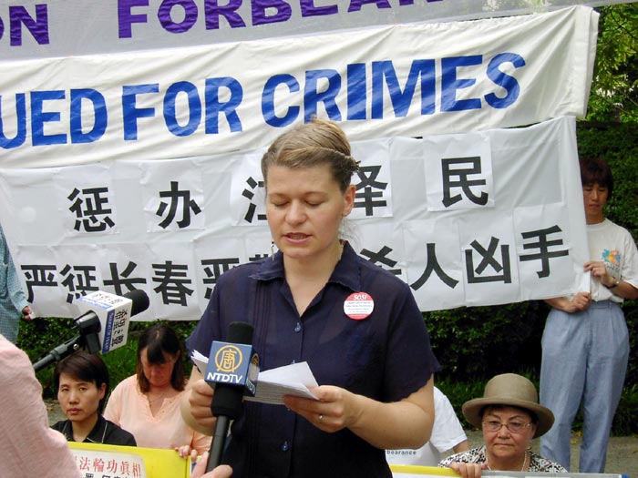 最后,瓦内莎卡引用法轮功学员周世雨博士的一段话,“从历史的教训中我们懂得了,在邪恶面前,我们必须站出来说话,不管结果如何。沉默只能纵容残暴。”