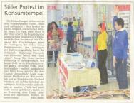 顾客们中有不少来到信息台前就签字,他们都说已经在报纸上了解了。学员们开始时还觉得很奇怪,后来才知道因为活动之前通知了记者希望他们来采访,他们分别已经在活动前一天和当天的当地报纸头版作了活动通告。有个女顾客说关于法轮功的陆陆续续的报导她都看了,她要多拿几张给熊伟的明信片,让其他人也寄。还有好些顾客对学功很有兴趣。