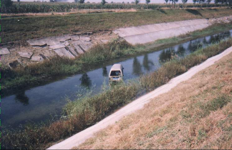【明慧网2003年12月4日】在2003年9月23日9时30分,山东省潍坊市开发区某村民(男,45岁)开小面包车,沿引黄济青大坝由东向西行驶至小路桥北以西1000米处,因采取措施不及时车倒翻于7-8米的引黄济青水渠,水渠跨度大约10多米宽,两边都用水泥制成,河内有一米多深的水,车翻下去之后,又端正地着落在水底,四轮着地。