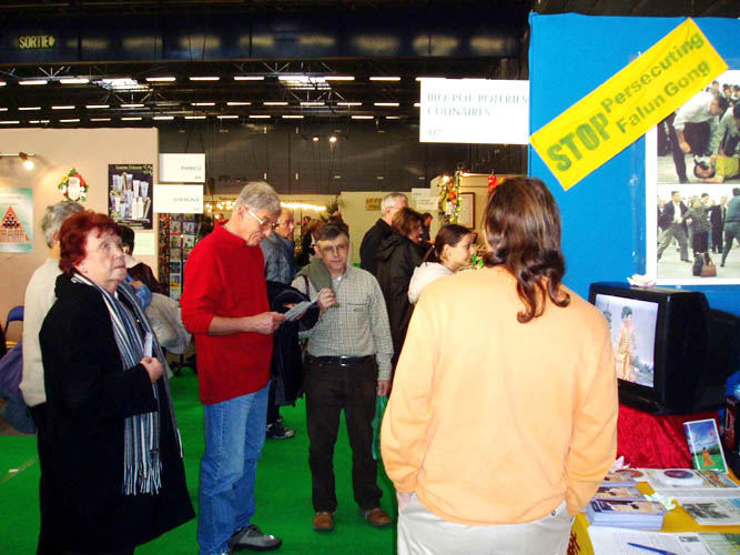 在九天里,参观者络绎不绝。我们共发出一万多分传单,以及上千份详细介绍江xx集团迫害法轮功的罪行和在全世界十几国开始的对江xx集团的起诉信息。同时,我们还征集到了几百个支持我们的签名。