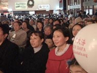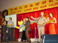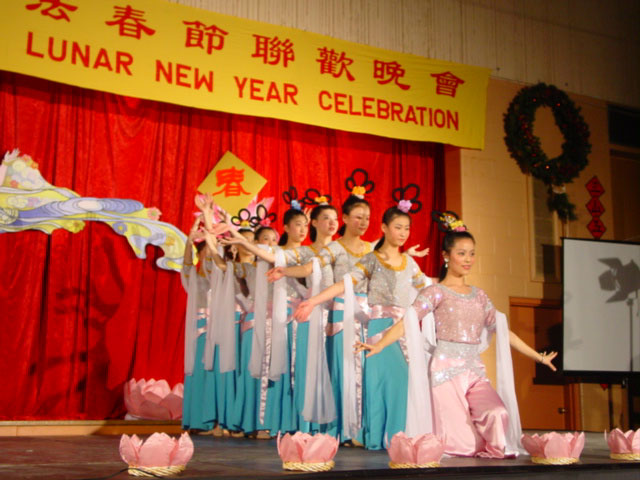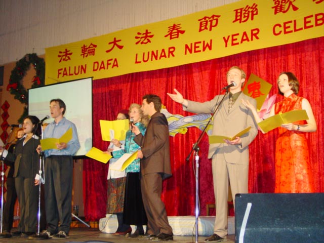 法轮大法学员与各界人士春节联欢活动最初开始于2000年春节前夕,当时有400多人参加,到今年2003年已经颇具规模。晚会是自由参加,免费入场,除了由法轮功学员表演的精彩喜庆的节目外,还备有丰盛的晚餐。菜式丰富,大约有250道菜,几乎全是由来自中国大陆、香港及台湾的多伦多法轮功学员亲手制作。