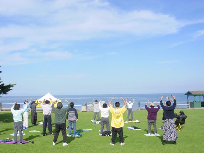 在海边旅游点集体炼功,召开新闻发布会,呼吁营救李祥春