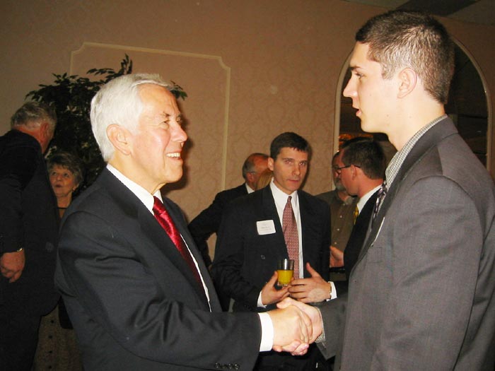 早餐会结束后,大家纷纷上前与卢格参议员合影留念。趁此良机,我和那位西人同修也来到了参议员先生近前。我代表印第安纳州的所有法轮功学员感谢卢格参议员对法轮功的一贯支持和帮助,并希望他能利用其在参众两院以及美国政界的影响,为改善中国的人权状况做出更大的努力。随后,西人同修又向卢格参议员简单介绍了美国公民李祥春由于修炼法轮功在探亲途中被中国政府非法拘捕的情况,并敦请他能为早日将李祥春营救出来尽一份力。卢格参议员表示他对法轮功受迫害的情况十分了解,同时,李祥春事件已经引起了他的关注。他相信美国政府会利用一切合法途径早日让李祥春获得自由。最后,卢格参议员很高兴地接受了我们为他准备的真相材料。