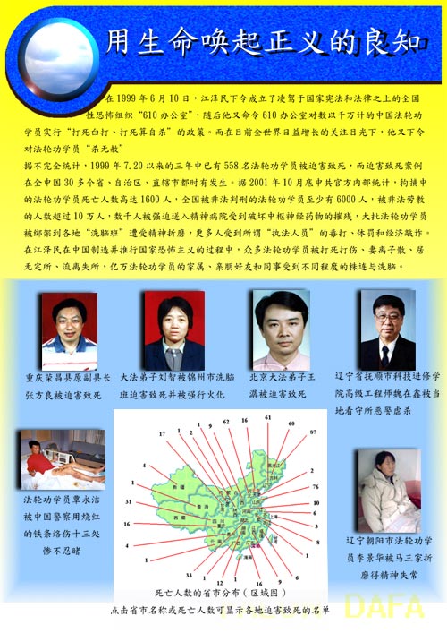 洪法展板:江泽民集团对法轮功的残酷迫害