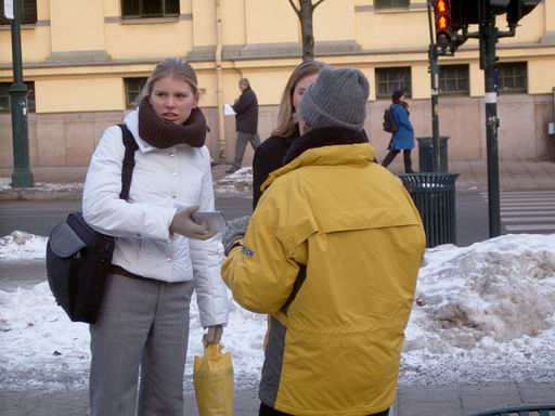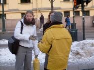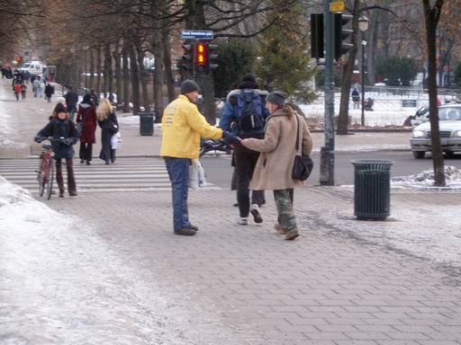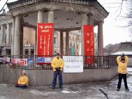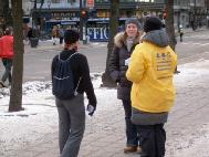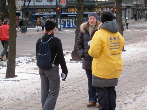 学员们展示功法,分送传单并和人们谈话,告诉他们有关法轮功在中国被迫害的事实。谈话时,他们经常发出同样的问题,为什么在中国会存在这种迫害,他们无法理解,这些只不过做气功运动,追求「真、善、忍」的人们,为什么受到迫害。听到关于这场迫害大部分人都非常关切并严肃以对。