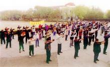 ![]() 清华大学师生在清华学堂前集体晨炼 |