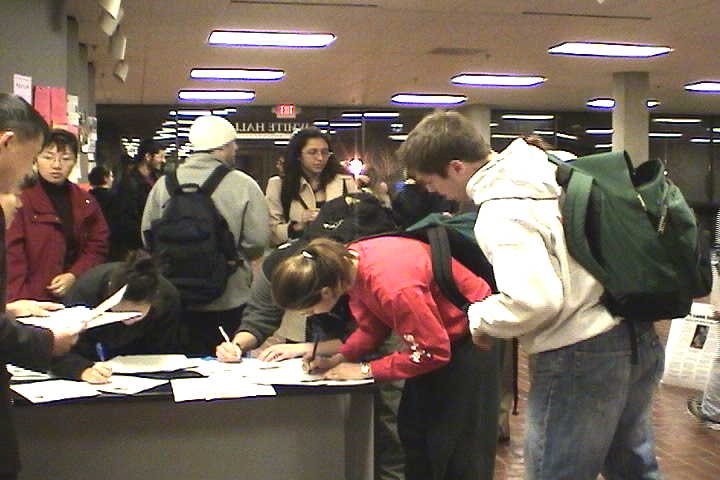 一位白人青年学生签完名,问:“我可以帮我的室友签吗?我们从报纸上看到Charles Li的消息,我们都愿意助他一臂之力!”