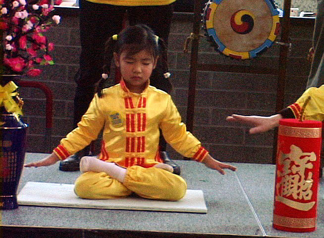 | 5岁的小弟子打坐 | 功法表演 | 为营救Charles Li征集签名 |