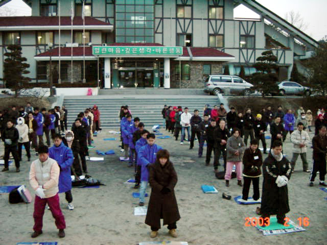 【明慧网2003年2月18日】2003年2月15日,韩国法轮大法心得交流会在大田市召开。参加这次交流会的学员,比起往年新学员较多。当天晚上,学员们分组进行了学法、发正念和交流,很多学员感到这是难得交流的好机会并与各地学员通宵进行了交流。16日清晨,学员们聚集在运动场上一起炼功、三次整点发正念后,又用了整个上午时间新老学员围绕学法、和发正念进行了分组交流。一位九十三岁的老大爷说他历尽了千辛万苦终于找到了大法,他现在的身体不比年轻人差,而且每天过得都很充实、幸福。下午,部分学员与大家交流了他们的心得体会。他们感人的故事使学员们热泪盈眶,赢得了阵阵的掌声。通过这次交流会,新老学员都得到了很大的提高,更加认识到了师父告诉我们目前要做好的三件事(即学法、讲真相和发正念)和形成整体的重要性。