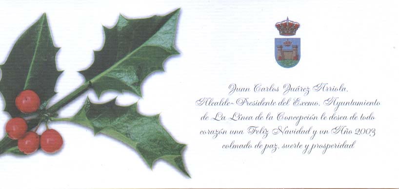 巴伦西亚市市长的贺卡“和平、希望与爱充满着我们的心田,在这圣诞的日子里和即将来临的2003年,我们坚信世界将会变得公正与美好。请接受我最美好的祝愿:圣诞快乐。”