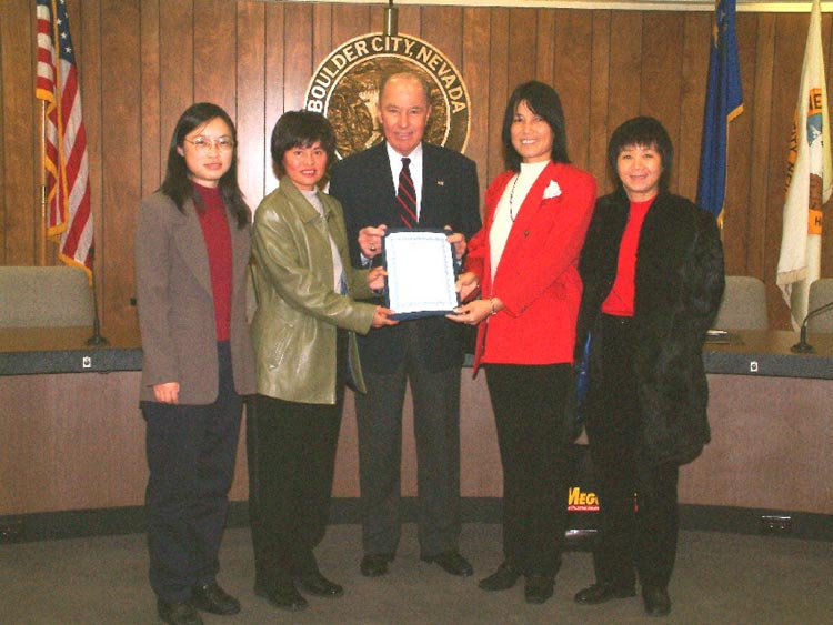 当天也许是天意的安排,市府的小礼堂要举行退伍军人会议,会议的时间安排和我们的约见时间只差半小时。当市长到达时,小礼堂已高朋满座,为了不影响别人开会,我们准备就在市长办公室领奖。但市长一到马上招呼我们到小礼堂,结果满满一礼堂的观众见证了这一值得庆祝的特殊时刻。