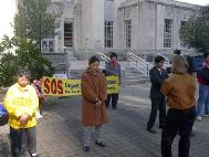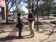 (5) 最后一队是在德州中部。从休士顿(Houston)出发,主要途经Dallas,Waco,Temple,Austin,Bryan等城市。我们在各个城市的市政大楼前举行新闻发布会,世界日报以及西方媒体的电视台、报纸等都对我们进行了采访。民众们纷纷签名表示支持。媒体的采访非常认真,除了详细拍摄我们炼功的场面和关于李祥春的被捕情况外,还详细地询问了关于中国迫害法轮功的问题,还询问了我们同行的一位学员在曾经回国遭受迫害的情况。当他们看到眼前这么一个活生生的被迫害的例子时,更加地震惊。