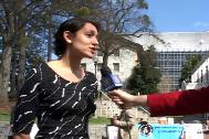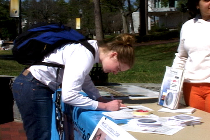 | 国际大赦爱默蕾大学分部主席劳拉.瑞维尔接受记者采访 | 国际大赦的征签活动得到学生们的极大兴趣和关注 |