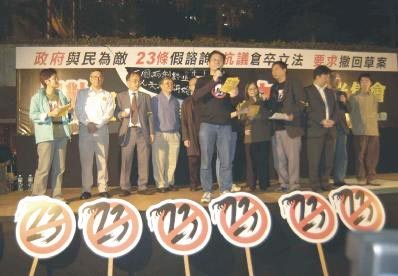 一向罕有地参加民间联席的香港记者协会,今次加入民间人权阵线反对23条立法行列,主席麦燕庭认为,23条立法最大的问题是,香港市民的自由空间在不知不觉中被侵蚀,日后可能已不能把自由追回。不过,她觉得安慰的是,从市民参与反23条活动的反应中,可以看到市民没有因为政府漠视民意而沮丧。