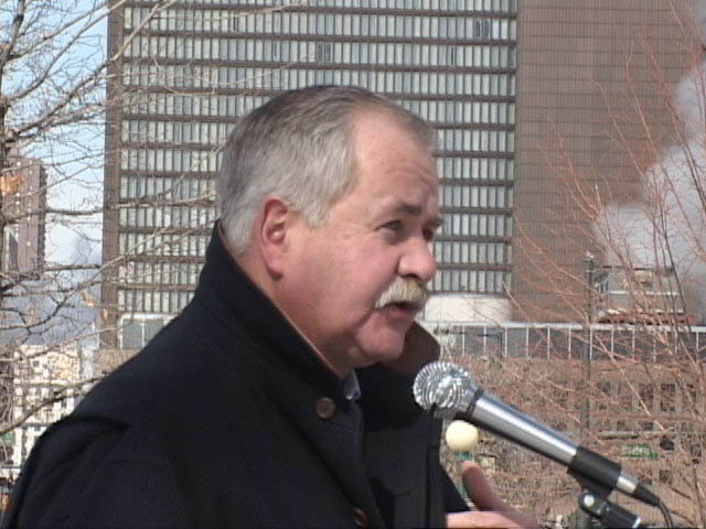 市议员艾德-托马逊和比尔-嘎里格先生分别在法轮功学员的掌声中作了简短的演讲。