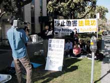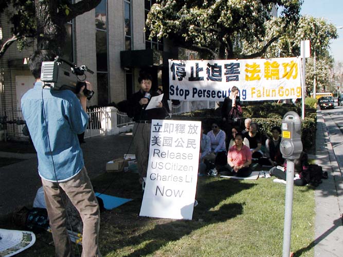 【明慧网2003年2月3日】2003年1月31日下午一点,部份洛杉矶法轮功学员聚集在中领馆前,强烈要求中国政府立即释放美国公民、法轮功学员李祥春(Charles Li)先生。此外,洛杉矶法轮功学员将采取更多的方式营救,直至李祥春获得自由。