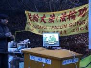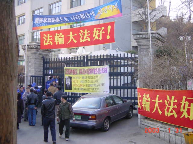 韩国大法弟子在中使馆前抗议江罗集团虐杀法轮功学员