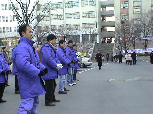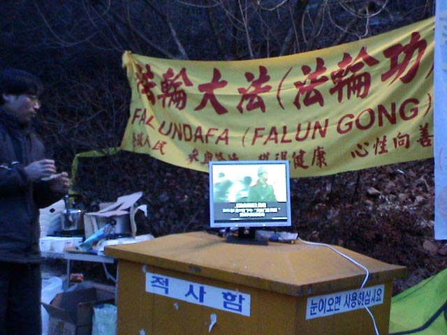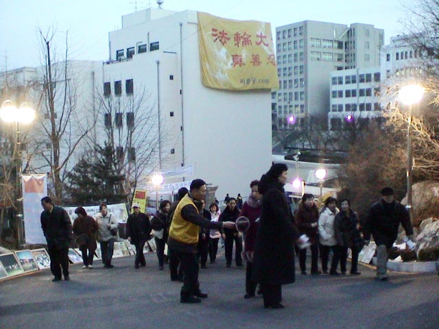 活动。下午两点多钟开始,中国朝鲜族同胞如潮水般涌进了庆熙大学的和平殿堂。我们早已把好了主要的通道:有的学员发传单、有的播放“天安门自焚案真相”录像、有的炼功发正念、有的站在图片展旁边说明真相……通过这一次活动,我们非常有效地帮助很多可贵的中国人民了解了真相,同时清除了另外空间抑制人们了解真相的邪恶因素。