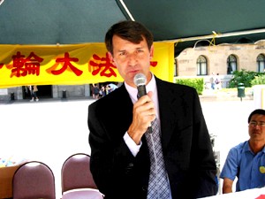市政府议员格兰姆.奎克市政府议员格兰姆.奎克说他很高兴有此机会表明他对法轮功学员的支持。他热情地祝贺法轮功学员对信仰的坚定信念及他们严守真、善、忍原则的高尚行为。