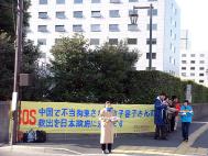【明慧网2003年3月12日】3月10日起,日本大法弟子再次在日本国会前请愿,呼吁日本政府及整个日本社会帮助营救金子容子。许多弟子先后来到这里,发报纸,征签名,讲述真相,而几位年纪大的弟子更是一大早就到位,挂好横幅,并一直坚持到傍晚结束。