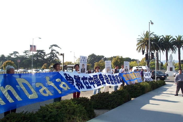 法轮功学员集会美国国务院 呼吁营救美国公民李祥春(图)