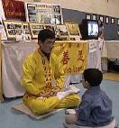 | 大法弟子进行功法展示 | 小乔治在认真学功 |