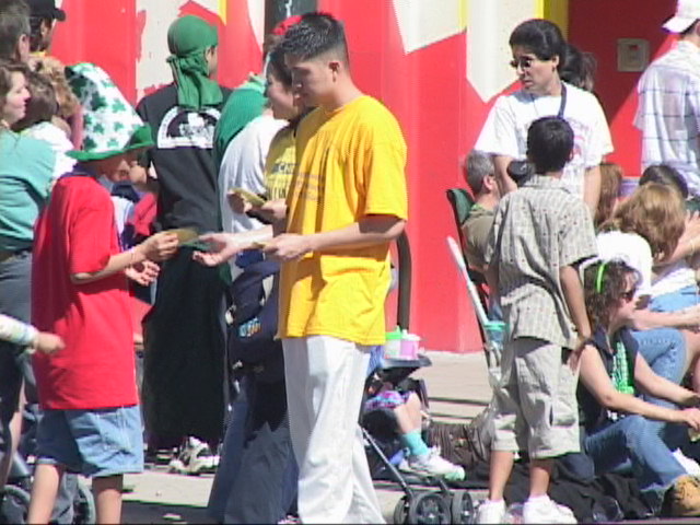 彩车上放着两个莲花台,彩车的尾部挂着用英文写着“真,善,忍”和“法轮大法好”的横幅。一路上,两名东方学员和两名西方学员分别在彩车上作了功法表演。两位东西方女学员分别在莲花台上盘腿打坐,十分优美。有不少游人,包括儿童,认真地模仿着学员的功法动作,有的人竖起大拇指,还有的人挥手致意。