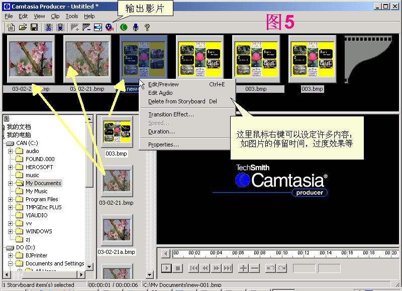 b.到Camtasia Producer里去完成由bmp到avi的转换。见图5