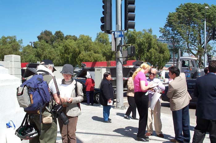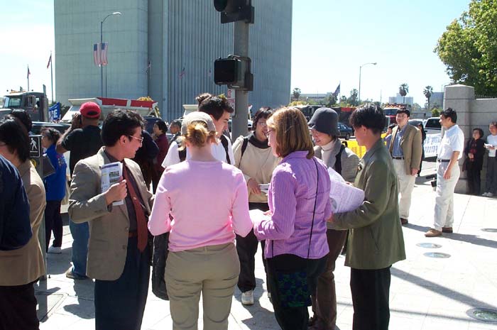 新闻发布会期间,恰好有别的团体举行活动,学员们就充分利用这个机会向他们讲真相,征集签名。人们听了李祥春的经历,都觉得很气愤,简直不可思议。在他们的踊跃支持下,短短一个小时我们就征集到许多签名。