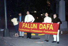 值得一提的是一位西方学员的丈夫并不修炼,但是他为今天的活动做了很多,帮助买材料,搬运东西,并在寒风中静静守候在烛光旁边,甚至不时地和周围警察讲起大法受迫害的真相。大法的光辉照耀着越来越多的众生。