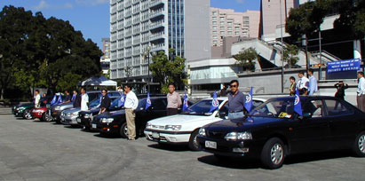 车队出发前在奥克兰市中心举行新闻发布会。 |  |