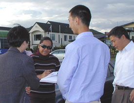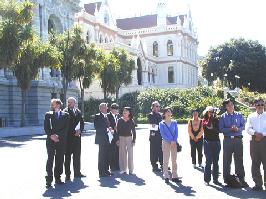 | 在陶波湖(Taupo)接受当地报社的采访 | 在议会大厦外与议员们共同举行新闻发布 |