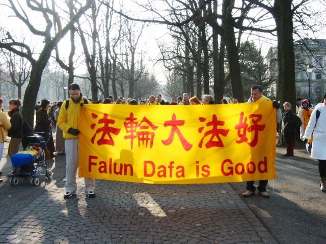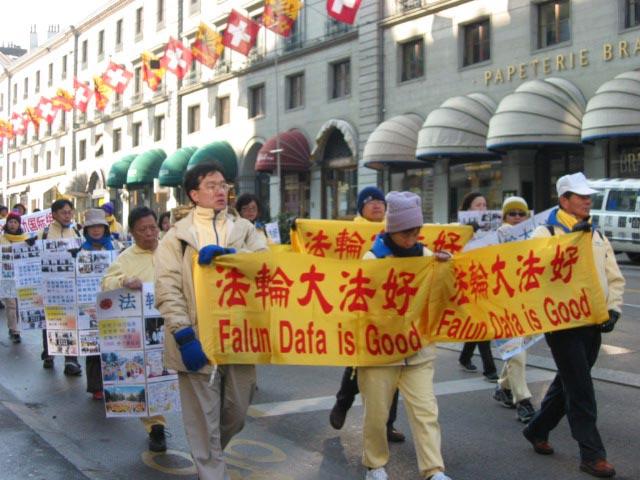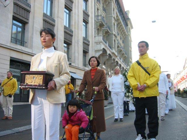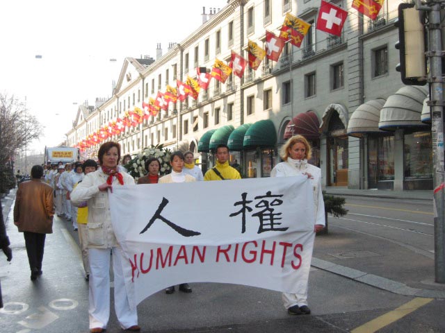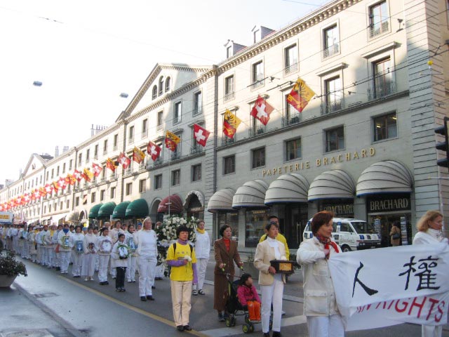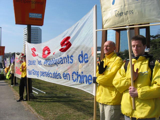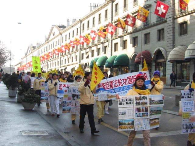 附:法轮功学员在日内瓦人权大会期间的游行和炼功场面的照片