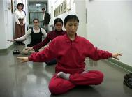 | 学员作图片解说 (前排中为女副市长) | 功法展示 |