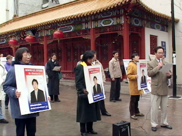 在集会上,大法弟子用普通话、广东话和英语宣读了蒙特利尔全体修炼者的谴责声明,声明指出:“今天,我们在这里集会,是强烈谴责江泽民政治流氓集团编造罪名、任意拘捕、非法审判美国公民、法轮功学员、医学博士李祥春先生,强烈要求中国当局立即无条件地恢复李祥春先生的自由。”学员代表在发言中称该事件“是江泽民集团玩弄中国法律、藐视国际法、公然威胁外国公民信仰自由的邪恶行径,是完全不能接受的。”