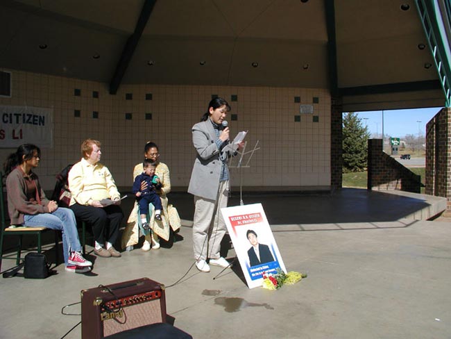 【明慧网2003年3月29日】为营救在中国受的美国公民李祥春,南达科达州学员根据本州的特点,展开了揭露江氏集团愚蠢、邪恶,呼吁美国政府和民众帮助李祥春早日重获自由的活动。