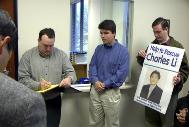 还有一位在州政府开电梯的老太太,当看到我们营救李祥春的展板后,就主动找我们询问和签名。后来,她还专门找到我们说,“中国政府怎么可以这样对待人,美国政府一定得把查尔斯救出来。”她还说,她会向每天坐她电梯的州政府官员谈谈这件事。