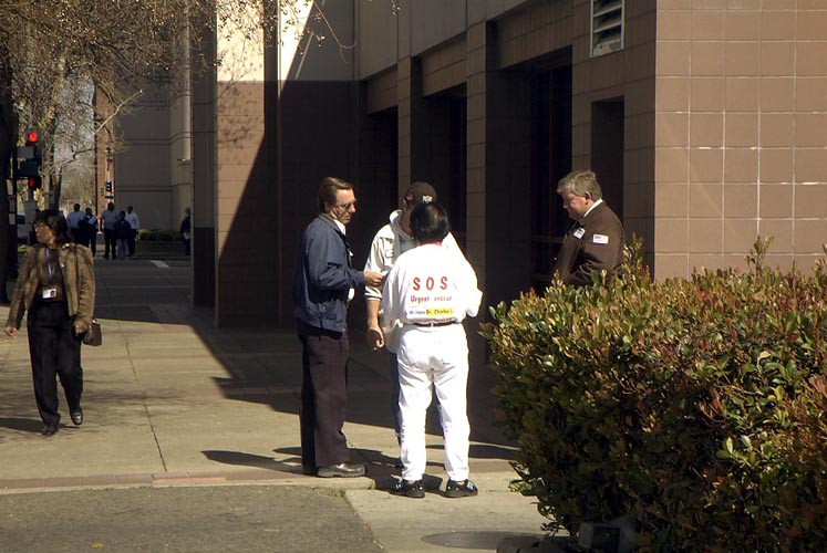 我们与所经过的几个县的主管官员、人权委员会的官员、以及其他政府工作人员作了广泛的交谈,向他们讲述李祥春被无理拘押和法轮功学员被残酷镇压甚至虐杀的真相。特别是在首府莎加湎度市,我们连续走访了三位国会参议员,并参加了全市的市民大会。会上,在场的副市长当场就签署了一封给美国总统布什和国务院的信。一位州参议员告诉我们,一周前他就签署了一封给中国驻美大使杨洁篪的信,并把一份复印件交给了我们。